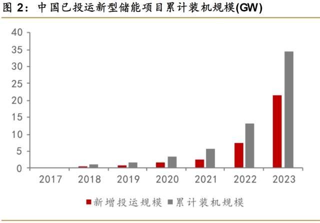 2023年中國新增投運新型儲能項目裝機規(guī)模21.5GW/46.6GWh,是2022年新增投運規(guī)模的3倍,預計2024年國內全年新增裝機將超過35GW,保持高速增長。