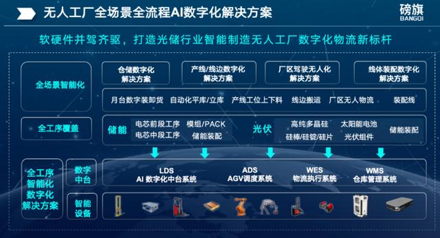 在此靠山下,磅旗科技踴躍摸索創(chuàng)新,使用構(gòu)建無人工場(chǎng)AI數(shù)字化,打造了自立可控的“軟件+硬件+數(shù)據(jù)+算法”云管端邊一體化處理方案,推出多品類AGV/機(jī)械人夾雜調(diào)理系統(tǒng)ADS、企業(yè)級(jí)無人工場(chǎng)數(shù)字中臺(tái)系統(tǒng)LDS,可能助力各AGV實(shí)現(xiàn)數(shù)據(jù)互通、協(xié)同功課,買通各工序過程的系統(tǒng)卡點(diǎn)和設(shè)施盲點(diǎn),賦能儲(chǔ)能產(chǎn)業(yè)智能制作數(shù)字化周全晉級(jí)。