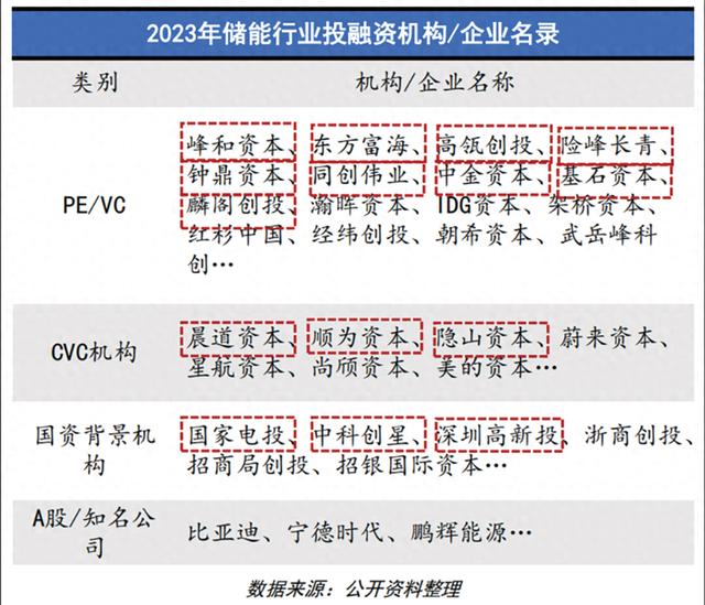 機構(gòu)入局者眾多,資金結(jié)構(gòu)豐富。過去一年,儲能行業(yè)的投資方不乏高瓴創(chuàng)投、同創(chuàng)偉業(yè)、中金資本(601995.SH)、IDG資本、春華資本等知名機構(gòu),也有蔚來資本、尚頎資本等產(chǎn)業(yè)基金,以及寧德時代、比亞迪(002594.SZ)等上市公司(具體見圖1)。