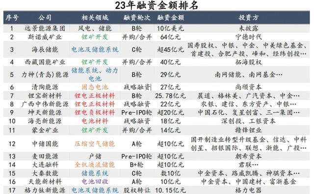2023年,部分企業(yè)獲取高額融資,遠景能源、海辰儲能融資領銜。