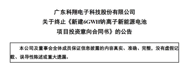據(jù)科翔股份董秘辦的工作人員回應(yīng)稱(chēng),這是公司根據(jù)發(fā)展情況做出的決定,也表示公司還在繼續(xù)做鈉離子電池,后續(xù)應(yīng)該會(huì)披露進(jìn)展。信豐縣的終止項(xiàng)目是意向協(xié)議,而與大亞灣簽訂的是正式協(xié)議。