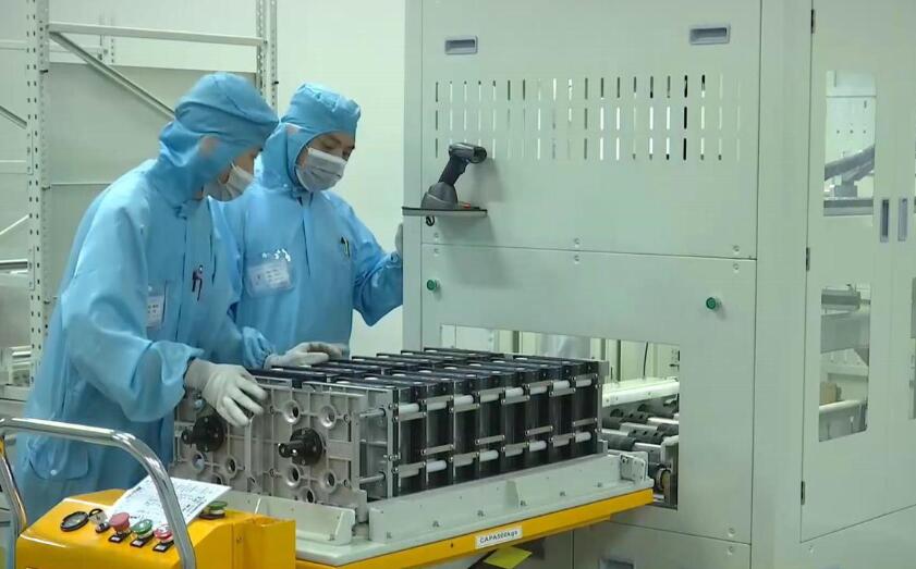 一條生產(chǎn)線,一分鐘生產(chǎn)750只電池。近日,在位于綿陽高新區(qū)(科技城直管區(qū))長虹新能源公司生產(chǎn)線上,生產(chǎn)材料在高速生產(chǎn)線上自動上線加工,一旁的新能源集控中心,大屏幕上的數(shù)字不斷跳動,生產(chǎn)計劃、實時產(chǎn)線情況、設(shè)備生產(chǎn)效率等數(shù)據(jù)一目了然。