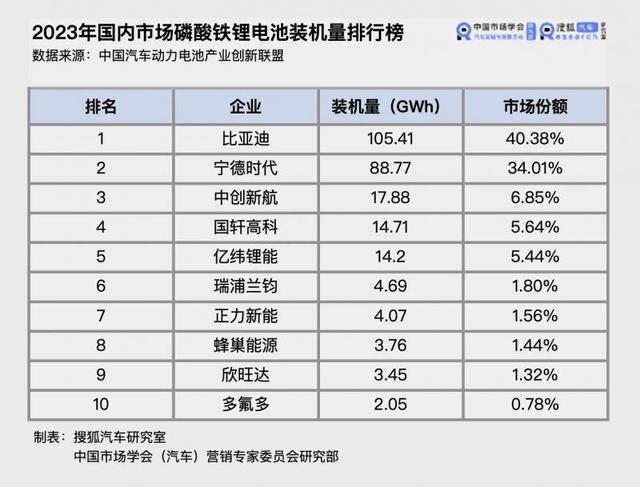 在動(dòng)力電池領(lǐng)域、特別是磷酸鐵鋰電池領(lǐng)域,寧德時(shí)代面對(duì)著來(lái)自比亞迪強(qiáng)有力的挑戰(zhàn)。中國(guó)汽車動(dòng)力電池產(chǎn)業(yè)創(chuàng)新聯(lián)盟公布的數(shù)據(jù)顯示,2023年比亞迪磷酸鐵鋰動(dòng)力電池的裝機(jī)量已經(jīng)超過(guò)寧德時(shí)代,拿下40%以上的市場(chǎng)份額。