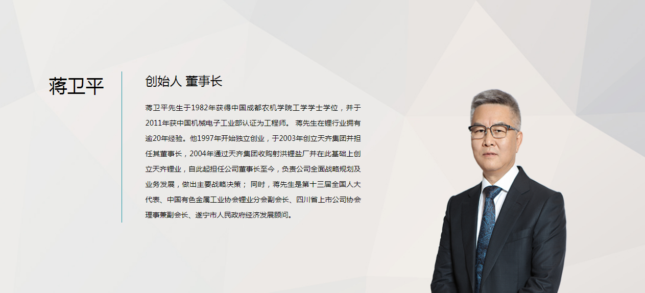 自擔(dān)任天齊鋰業(yè)副董事長以來,蔣安琪主要負(fù)責(zé)協(xié)助公司制定戰(zhàn)略及投資規(guī)劃以及協(xié)助董事長蔣衛(wèi)平作出主要戰(zhàn)略決策。