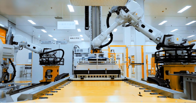 規(guī)范化和智能化生產(chǎn)是發(fā)展儲(chǔ)能的必由之路,也是支撐儲(chǔ)能產(chǎn)品迭代、推廣、持續(xù)降本、持續(xù)降碳、擴(kuò)大應(yīng)用規(guī)模的關(guān)鍵條件。在 “超G工廠”中,配備了由緯景儲(chǔ)能自主研發(fā)的業(yè)內(nèi)自動(dòng)化率最高的液流電池智能產(chǎn)線與系統(tǒng)集成線,通過(guò)激光定位、昆蟲(chóng)仿生等制造工藝,集標(biāo)準(zhǔn)化、自動(dòng)化、數(shù)智化于一體,開(kāi)創(chuàng)性地實(shí)現(xiàn)液流電池生產(chǎn)的全過(guò)程數(shù)智化。工廠配有超過(guò)300個(gè)機(jī)器人承擔(dān)精密且繁重的作業(yè),機(jī)器人能夠單臂抓舉200公斤重物,且質(zhì)子交換膜精準(zhǔn)度可到達(dá)到±0.1毫米,每條產(chǎn)線僅需20分鐘即可完成一個(gè)成品電池的組裝,生產(chǎn)效率與精準(zhǔn)度均提升了數(shù)十倍,大幅度提高了公司交付產(chǎn)品的良率,提供了質(zhì)量保證。