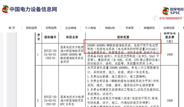 除了單采314Ah電芯外,Q2已多次出現(xiàn)對314Ah電芯單體容量要求的儲能系統(tǒng)項目。4月16日,運達股份發(fā)布1500V液冷儲能系統(tǒng)項目框采,明確儲能電池單體為314Ah電池;4月18日,興泰公司發(fā)布110MW/240MW釩鋰結(jié)合電網(wǎng)側(cè)獨立儲能電站項目,要求采用單體磷酸鐵鋰電芯容量為314Ah;5月10日,國家電投東方能源海興新型儲能項目200MW/400MWh磷酸鐵鋰儲能系統(tǒng)設(shè)備采購招標公告發(fā)布,明確要求儲能系統(tǒng)電池單體的標稱容量≥314Ah;5月14日,中國石油濟柴動力發(fā)布5MWh液冷儲能系統(tǒng)招標公告,明確指出電池采用不低于314Ah的磷酸鐵鋰電池……