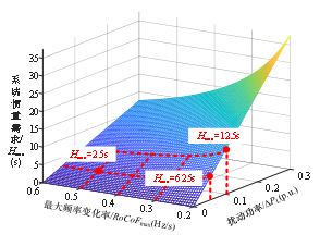 圖3 系統(tǒng)慣量需求和最大頻率變化率及擾動功率的關系