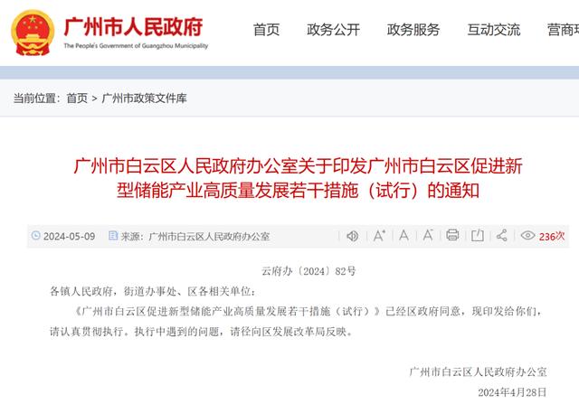 近日,《廣州市白云區(qū)促進新型儲能產(chǎn)業(yè)高質(zhì)量發(fā)展若干措施(試行)》(以下簡稱《若干措施》)印發(fā),白云區(qū)在《若干措施》中提出包括支持新型儲能制造業(yè)項目建設(shè)、引導新型儲能產(chǎn)業(yè)集聚發(fā)展、加強新型儲能產(chǎn)業(yè)生態(tài)營造等10項扶持措施,以此搶占產(chǎn)業(yè)發(fā)展先機。