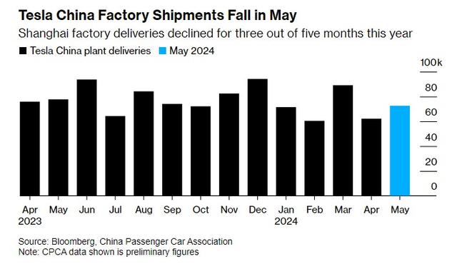 智通財(cái)經(jīng)獲悉,5月,特斯拉(TSLA.US)上海工廠的交付量今年以來(lái)第三次同比下滑,與競(jìng)爭(zhēng)對(duì)手的強(qiáng)勁增長(zhǎng)形成鮮明對(duì)比,也進(jìn)一步顯示出在中國(guó)爭(zhēng)奪客戶(hù)的激烈競(jìng)爭(zhēng)。