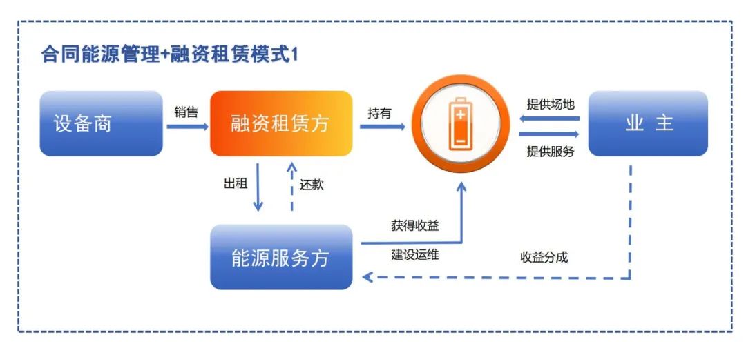 在合同能源管理模式基礎上,引入融資租賃方,向能源服務方和業(yè)主提供儲能資產出租,以降低能源服務方和業(yè)主的現(xiàn)金流壓力,同時,能夠發(fā)揮能源服務方在系統(tǒng)運營方面的專業(yè)優(yōu)勢,有利于推動儲能項目的落地。此模式涉及參與方較多,合同簽訂、財務開票等流程較為復雜,且其中子模式演變靈活多樣,未來隨著資產方對儲能盈利的信心提升,這種模式有望得到進一步推廣。