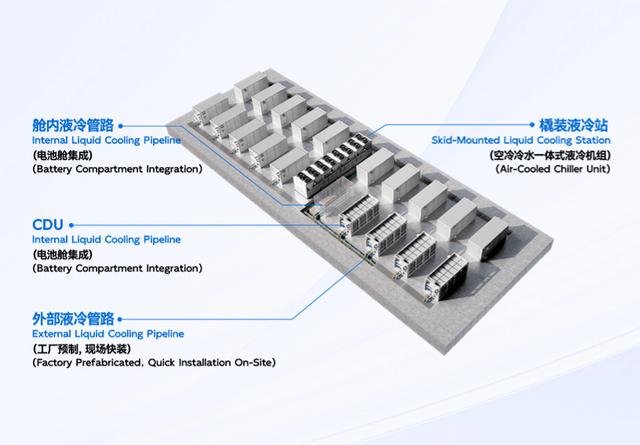 該系統(tǒng)由集中布置的液冷站、布置于電池艙內的配水動力站(CDU) 、電池艙內外液冷管路,以及TMS智控系統(tǒng)組成,其具有空冷冷水一體式液冷機組和均衡智控 TMS 兩項節(jié)能關鍵技術:首先是集中式液冷機組相比分布式液冷機組全年能效比提高113%,全年節(jié)省能耗大于50%。其次是均衡智控TMS基于負荷實時預測、CPC均衡模型等,可精準預測電池系統(tǒng)溫控目標曲線,實現電芯均衡冷卻,可使液冷系統(tǒng)冷卻能力輸出峰值降低35%以上,帶來液冷站配置規(guī)??蓽p小35%或節(jié)能45%,相比于分布式電池艙液冷系統(tǒng)節(jié)能效果顯著,在儲能液冷、數據中心液冷等領域都具備良好的應用前景。