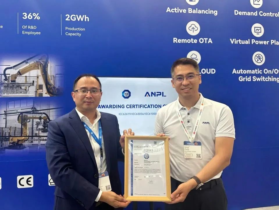 認證展會現(xiàn)場,安瑞哲這款儲能柜獲頒歐洲市場權威的TüV南德認證證書。南德TüV是世界上規(guī)模最大、最悠久認證機構之一,得到全球的廣泛認可。南德TüV對其新品的認同,不僅因為其符合行業(yè)標準,還源于產(chǎn)品的創(chuàng)新設計。安瑞哲總經(jīng)理張登基介紹,HULK 200具備單體容量可調控的特點,其單體容量范圍為100~200KWh,多機并聯(lián)可擴展至MWh級容量,靈活配置可滿足不同客戶需求。依托安瑞哲自主研發(fā)的風冷系統(tǒng),電池模組和系統(tǒng)的防水等級均有了大幅提升,有力保障了運行安全。創(chuàng)新的散熱板和風道設計確保設備在各種環(huán)境下都能穩(wěn)定運行,產(chǎn)品既媲美液冷的散熱性能,又保留風冷的高效運維。