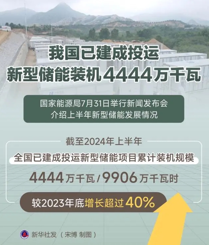 國家能源局31日舉行新聞發(fā)布會(huì),介紹上半年新型儲(chǔ)能發(fā)展情況。截至2024年上半年,全國已建成投運(yùn)新型儲(chǔ)能項(xiàng)目累計(jì)裝機(jī)規(guī)模達(dá)4444萬千瓦/9906萬千瓦時(shí),較2023年底增長超過40%。