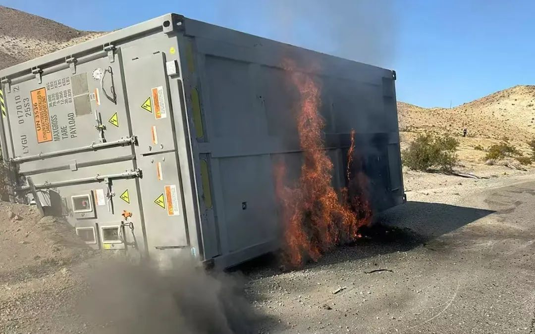 事故起因是一輛載有集裝箱儲能設(shè)備的卡車翻覆后,電池集裝箱起火,所幸目前公路已恢復(fù)通行。