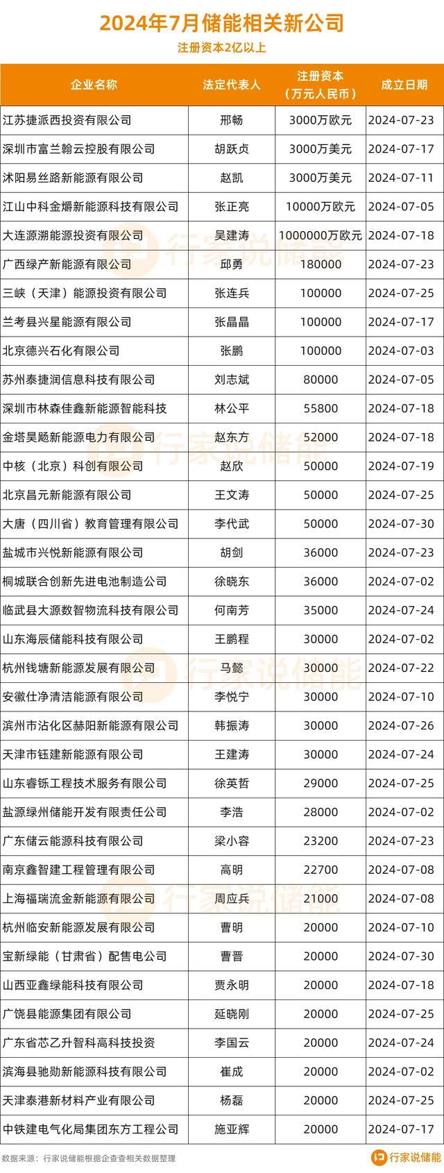 近日,多家儲(chǔ)能相關(guān)新公司及子公司成立。另據(jù)企查查數(shù)據(jù)顯示,2024年1-7月新注冊(cè)儲(chǔ)能相關(guān)公司48708家,平均算下來日增近200家。