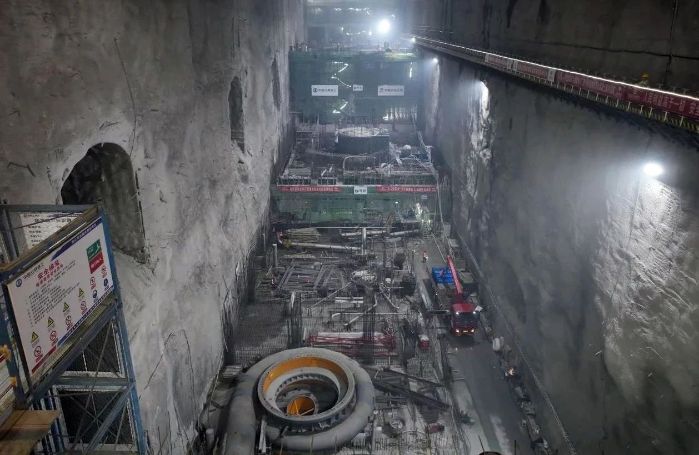 天臺(tái)抽蓄電站主廠房1號機(jī)組從上至下分為發(fā)電機(jī)層、中間層、水輪機(jī)層、蝸殼層、尾水管層。自2023年12月15日主廠房1號機(jī)組開挖完成交面,至2024年9月29日主廠房1號機(jī)組順利封頂,歷時(shí)九個(gè)半月。