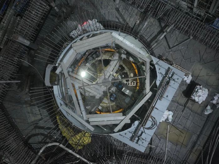 天臺(tái)抽蓄電站定子機(jī)座呈圓筒形,最大外形尺寸8.05米×8.05米×4.9米(長×寬×高),重量達(dá)80余噸,是發(fā)電電動(dòng)機(jī)的重要靜止部件,它將固定定子鐵心,承擔(dān)發(fā)電電動(dòng)機(jī)全部定子重量以及上機(jī)架和推力軸承重量,并承載從推力軸承傳遞下來的機(jī)組轉(zhuǎn)動(dòng)部件重量及水推力負(fù)荷。此次定子機(jī)座順利安裝為后續(xù)推進(jìn)定子鐵心疊片、定子線棒安裝等機(jī)電工作奠定了堅(jiān)實(shí)基礎(chǔ)。