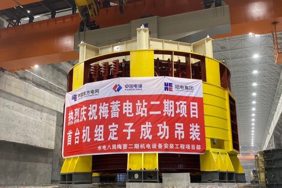 11月8日,梅蓄電站二期項(xiàng)目首臺(5號)機(jī)組定子吊裝完成,為2025年首臺機(jī)投產(chǎn)發(fā)電奠定了堅(jiān)實(shí)基礎(chǔ)。