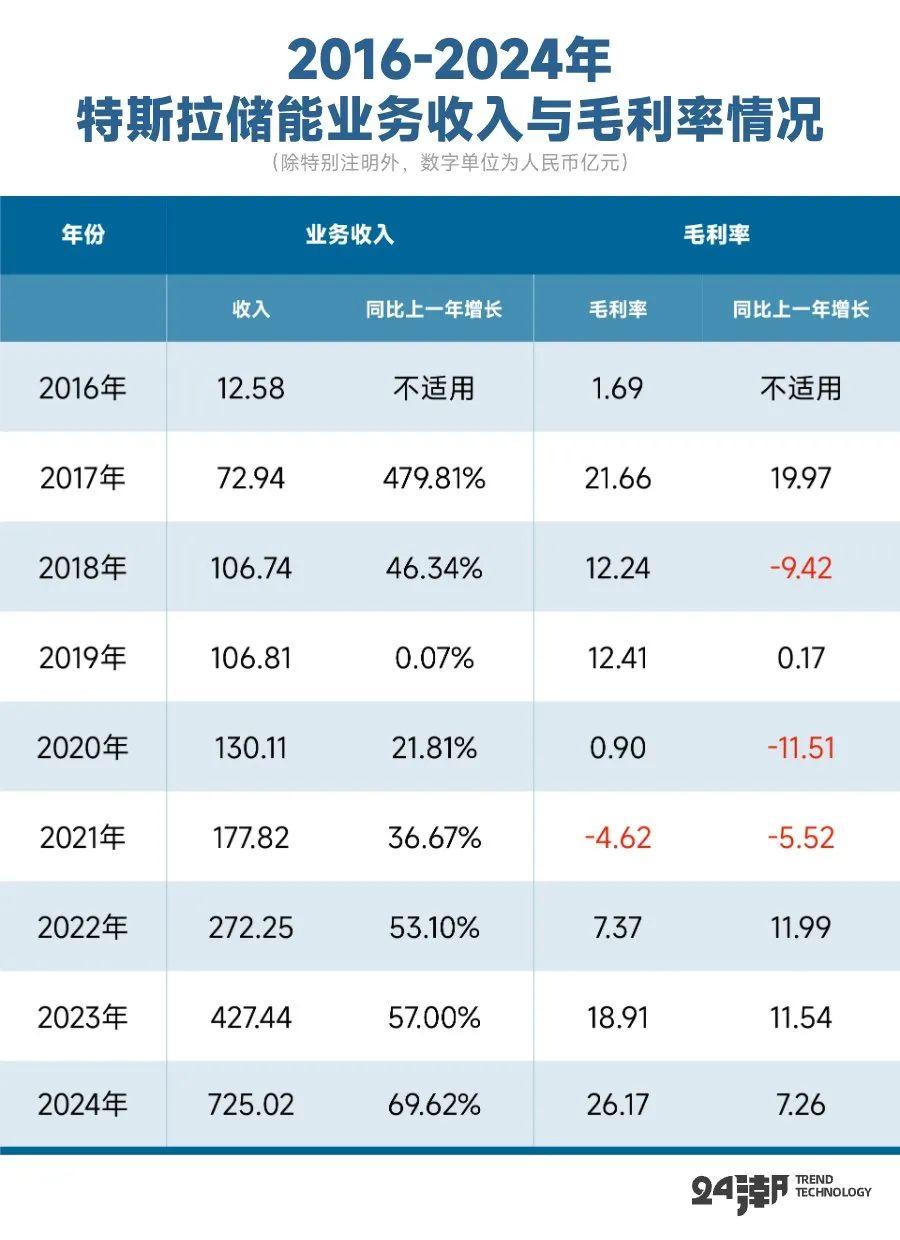 但看到特斯拉年報,儲能系統(tǒng)業(yè)務快速增長,營收毛利率雙提升。特斯拉在海外儲能需求增長的爆發(fā)同時,又吃到了國內(nèi)電芯供應商內(nèi)卷的紅利,降本增收,所以儲能業(yè)務毛利率甚至超過汽車業(yè)務,特斯拉2024年全年儲能業(yè)務26億美元的毛利潤,這下賣電池還比電池+車還賺錢了。