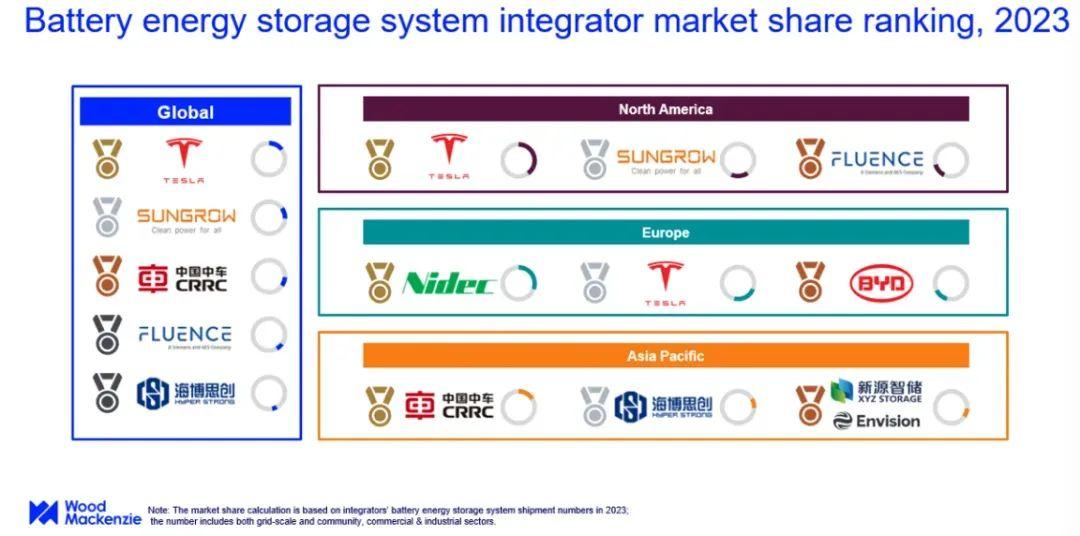 目前中國儲能裝機量最高,幾乎占到全球的近一半,畢竟是電力系統(tǒng)最發(fā)達的國家,但是量大沒用,國內(nèi)業(yè)務其實不怎么賺錢,一個是聯(lián)動壓價,光伏配儲能,光伏低迷,儲能預算跟光伏成本聯(lián)動,集成系統(tǒng)就不賺錢,因此電芯也別指望賺錢,而集成系統(tǒng)的集中度較低,有很多國企參與競爭,比如中車株洲是目前市占率第一,這種情況下,面向國內(nèi)的集成系統(tǒng)變成了差生意,跟特斯拉形成劇烈的對比。