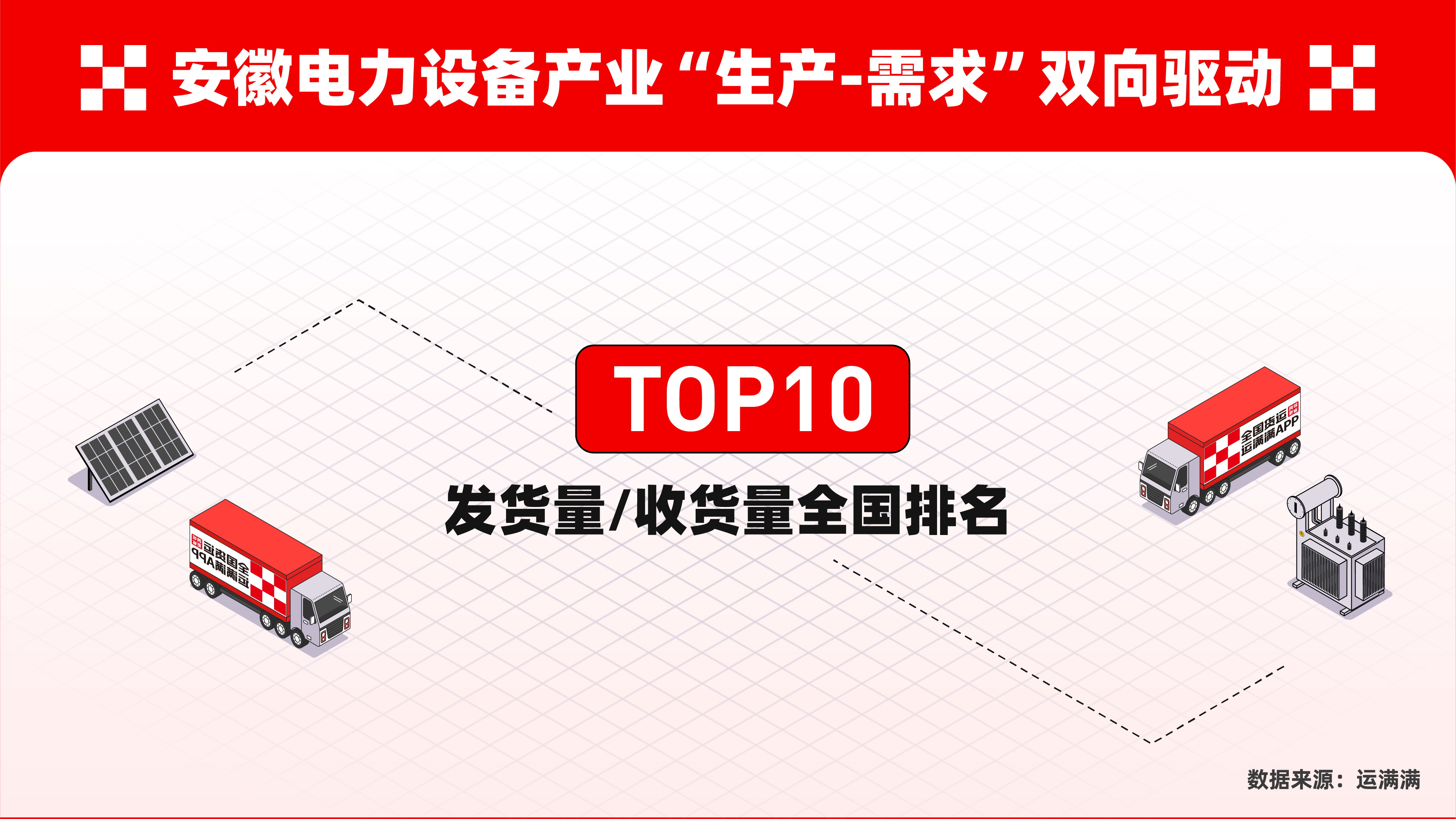 值得一提的是,運滿滿數(shù)據(jù)顯示,安徽不僅是電力設(shè)備輸出大省,在需求端同樣表現(xiàn)強勁,全年電力設(shè)備收貨量排名全國第6,呈現(xiàn)出 “生產(chǎn)-需求” 雙向驅(qū)動的產(chǎn)業(yè)特性。未來,隨著安徽電力設(shè)備產(chǎn)業(yè)向高端化、綠色化邁進(jìn),對專業(yè)化運輸?shù)男枨髮⑦M(jìn)一步增長。例如,海上風(fēng)電設(shè)備、超高壓輸電裝置等大件貨物運輸,亟需更精細(xì)的運力匹配方案。對此,運滿滿方面表示,將深化與制造業(yè)的數(shù)據(jù)聯(lián)動,推動供應(yīng)鏈全鏈條數(shù)字化。