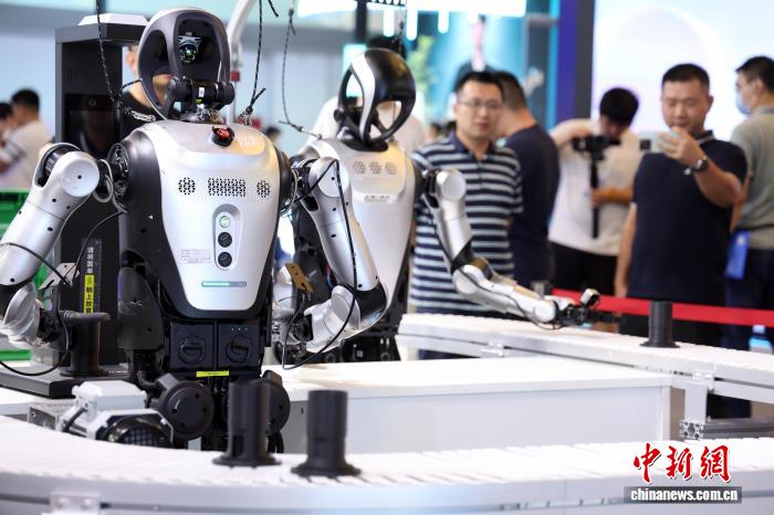 2025世界人工智能大會上,機(jī)器人備受矚目。而在這背后,大模型讓機(jī)器人更“聰明”。中新網(wǎng)記者 湯彥俊 攝