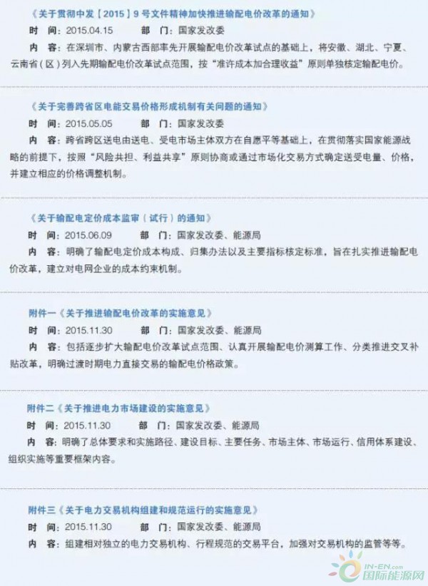 《電力發(fā)展“十三五”規(guī)劃》出臺,指出在電力體制改革方面,組建相對獨立和規(guī)范運行的電力交易機構(gòu),建立公平有序的電力市場規(guī)則,初步形成功能完善的電力市場。深入推進簡政放權(quán)。一是核定輸配電價。2017年底前,完成分電壓等級核定電網(wǎng)企業(yè)準(zhǔn)許總收入和輸配電價,逐步減少電價交叉補貼。二是建立健全電力市場體系。建立標(biāo)準(zhǔn)統(tǒng)一的電力市場交易技術(shù)支持系統(tǒng),積極培育合格市場主體,完善交易機制,豐富交易品種。2016年啟動?xùn)|北地區(qū)輔助服務(wù)市場試點,成熟后全面推廣。2018年底前,啟動現(xiàn)貨交易試點;2020年全面啟動現(xiàn)貨交易市場,研究風(fēng)險對沖機制。三是組建相對獨立和規(guī)范運行的電力交易機構(gòu)。四是有序放開發(fā)用電計劃。2020年前逐步取消優(yōu)先發(fā)電權(quán)以外的非調(diào)節(jié)性發(fā)電計劃。五是全面推進配售電側(cè)改革。2018年底前完成售電側(cè)市場競爭主體培育工作。