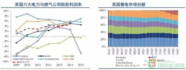 整個英國由3家輸電網(wǎng)公司負責(zé)區(qū)域性輸電網(wǎng)絡(luò)。在配電網(wǎng)層面,英國被劃分為14個區(qū)域并由6大配電網(wǎng)公司(DNOs)運營。配電公司作為獨立于輸電和售電環(huán)節(jié)的中間人,通過運作其擁有的配電網(wǎng)絡(luò)將輸電網(wǎng)傳輸?shù)碾娏Ψ峙浣o民用和工商業(yè)用戶。但是配電公司并不參與售電的環(huán)節(jié)。與發(fā)電、輸電和配電公司不同的是,英國電力供應(yīng)商被定義為支付配電網(wǎng)絡(luò)費用并從電力批發(fā)市場中購買電力,再以一定價格出售給自己顧客的商業(yè)實體。
