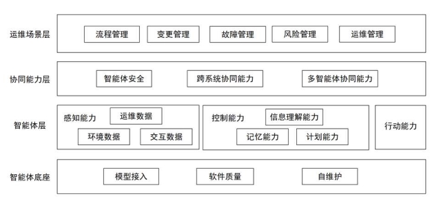 該架構(gòu)以?場(chǎng)景需求為牽引??,通過(guò)協(xié)同層打通系統(tǒng)壁壘,以智能體層的感知-決策-行動(dòng)閉環(huán)為核心能力載體,最終由底座提供工程化支撐。四層能力環(huán)環(huán)相扣,既明確了技術(shù)能力邊界,又強(qiáng)調(diào)實(shí)際落地場(chǎng)景的適配性,為企業(yè)構(gòu)建智能運(yùn)維體系提供清晰的模塊化建設(shè)路徑。