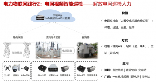 電網(wǎng)視頻智能巡檢:應(yīng)用基于華為昇騰AI芯片的Atlas系列產(chǎn)品方案,匹配桿塔、管廊、站所不同場景,通過對設(shè)備異常、環(huán)境風險、人員違規(guī)等的AI識別,將風險信息及時傳遞給視頻云中心,做到風險及時發(fā)現(xiàn),幫助客戶實現(xiàn)電網(wǎng)巡檢 “由人看變成機器自動識別”,解放電網(wǎng)巡檢人力,提高運維效率,有效保障電網(wǎng)的安全穩(wěn)定運行。