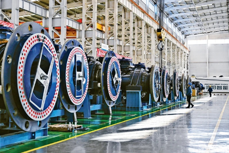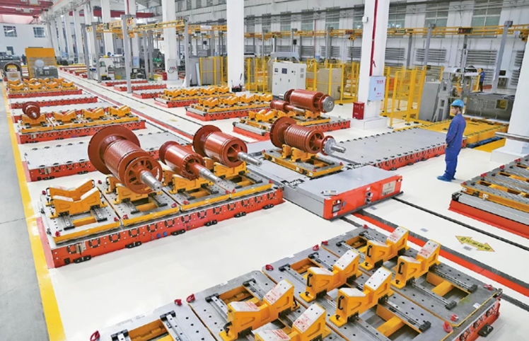 圖為2024年2月29日,在哈電集團(tuán)佳木斯電機(jī)股份有限公司的高壓電機(jī)數(shù)字化裝配車間,工作人員在查看數(shù)字化設(shè)備運(yùn)行情況。 新華社記者 王建威/攝