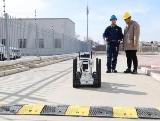 國網(wǎng)天津電科院研發(fā)團隊自主研制的電力設備遙控探測機器人近日在研發(fā)基地開展功能測試。國網(wǎng)天津市電力公司供圖