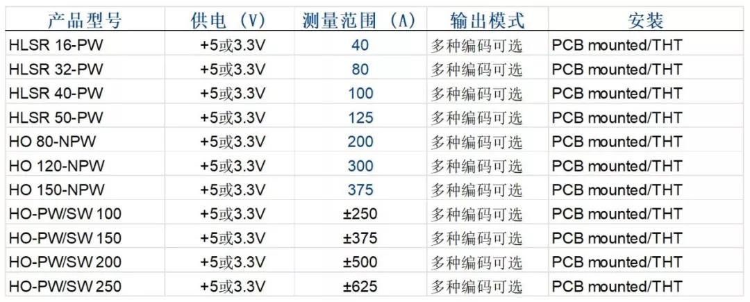 萊姆最新發(fā)布的系列數(shù)字輸出型開環(huán)霍爾效應電流傳感器:HO和HLSR,它們就是基于Σ-Δ調(diào)制器原理,輸出信號為1位串行比特流信號的數(shù)字傳感器。該新品具有4種不同的機械設計來滿足PCB安裝和盤式安裝的要求,其可以對額定值為16、32、40、50、80、100、120、150、200、250ARMS的電流進行測量(如表1所示,圖4所示),并具有20kHz帶寬,12位的分辨率。