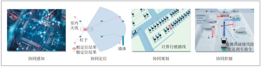 典型場景如智慧泊車,通過協(xié)同感知、協(xié)同定位、協(xié)同規(guī)劃和協(xié)同控制等技術實現(xiàn)高效、智能的停車管理和服務(見圖1)。智慧泊車的技術核心是根據多源傳感器異構算法聯(lián)合感知的異步動態(tài)協(xié)同感知系統(tǒng),基于場側的無線通信技術和車輛即時定位與地圖構建技術的協(xié)同定位系統(tǒng),同時基于先驗地圖和實時路況的全局路徑調度和車輛感知的局部軌跡規(guī)劃的協(xié)同系統(tǒng),以及場端原始感知數據及預測與車輛實時規(guī)劃軌跡的實時干涉控制系統(tǒng),實現(xiàn)車路云一體化的泊車服務。