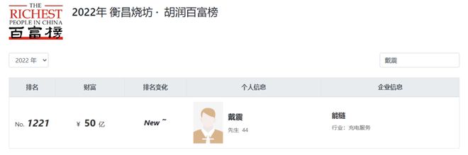 2022年衡昌燒坊·胡潤百富榜上,戴震以50億財(cái)富列第1221位。