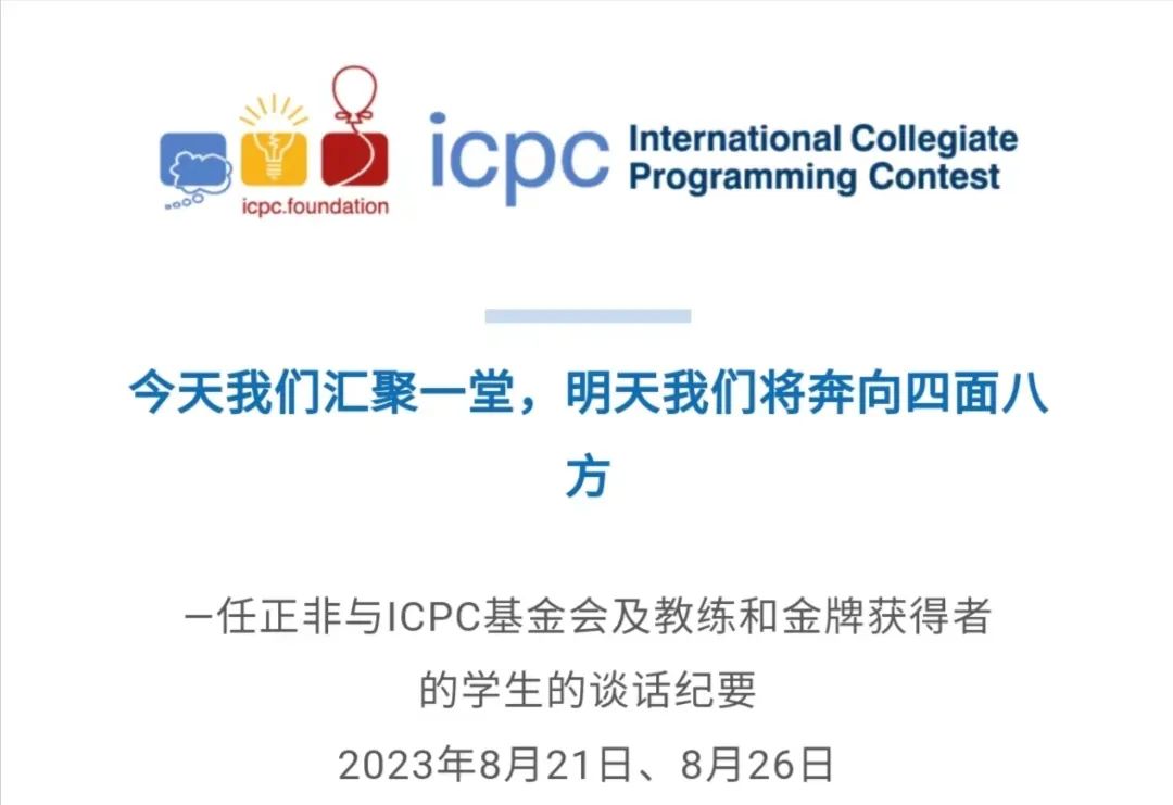 9月19日,國(guó)際大學(xué)生程序設(shè)計(jì)競(jìng)賽(International Collegiate Programming Contest,簡(jiǎn)稱ICPC)官網(wǎng)披露了華為創(chuàng)始人兼CEO任正非8月21日、8月26日與ICPC基金會(huì)及教練和金牌獲得者的學(xué)生的談話紀(jì)要。