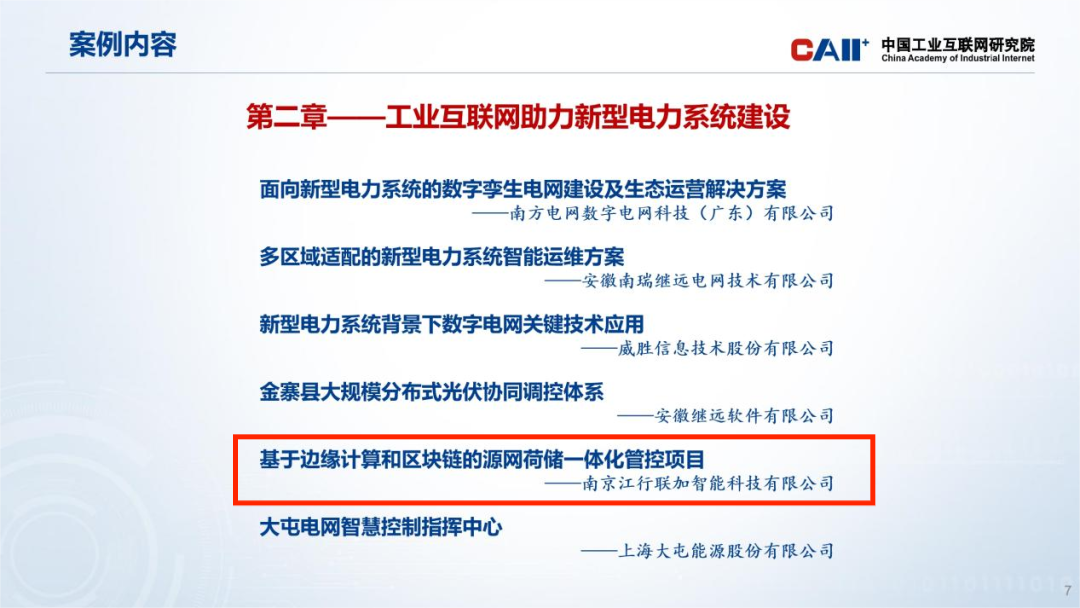 江行智能“基于邊緣計(jì)算和區(qū)塊鏈的源網(wǎng)荷儲一體化管控項(xiàng)目”從近百份能源工業(yè)互聯(lián)網(wǎng)相關(guān)案例中脫穎而出,作為新型電力系統(tǒng)建設(shè)的典型案例入選。
