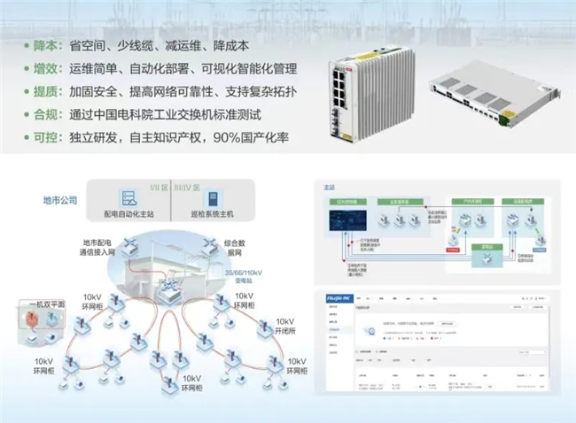 基于此,銳捷網(wǎng)絡(luò)創(chuàng)新性地提出了“一機(jī)雙網(wǎng)”的設(shè)想,聚焦降低成本、提升效率與保障質(zhì)量三大核心目標(biāo),融入了多項(xiàng)關(guān)鍵技術(shù)創(chuàng)新,諸如智能可視化運(yùn)維功能,安全加固措施,網(wǎng)絡(luò)可靠性策略的強(qiáng)化,最終成功推出雙平面配電通信解決方案,為電網(wǎng)用戶提供高效、安全、易管理的通信基礎(chǔ)設(shè)施。