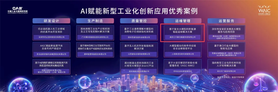 在“AI賦工業(yè),數(shù)智啟未來”人工智能賦能新型工業(yè)化主題論壇上,江行智能“基于復(fù)合大模型的新能源智能運(yùn)維解決方案”成功入選AI賦能新型工業(yè)化創(chuàng)新應(yīng)用優(yōu)秀案例。