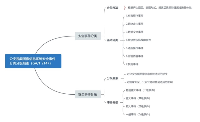 標準主要內(nèi)容:該標準內(nèi)容主要包括安全事件分類、安全事件分級等兩大類。同時,標準還闡述了公安視頻圖像信息系統(tǒng)安全事件分類、基本分類和安全事件分級要素、事件分級等內(nèi)容。詳情如圖: