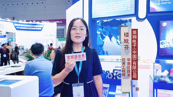 萊姆電子華南區(qū)FAE樓晗芬女士則接受了變頻器世界的視頻采訪,為大家詳細介紹了萊姆電子在本次展會中的產(chǎn)品。針對驅(qū)動焊接、鐵路軌交等傳統(tǒng)領(lǐng)域,樓工表示:“萊姆電子在傳統(tǒng)領(lǐng)域有高精度電流傳感器、開環(huán)霍爾和閉環(huán)霍爾,量程高達20,000A。”
