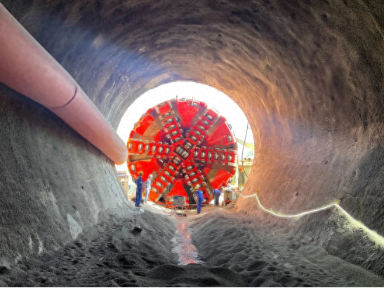 近日,中交天和為都江堰市供排水系統(tǒng)提升北區(qū)供水廠引水隧洞工程研制的刀盤直徑4.1米TBM掘進(jìn)長度突破1500米。針對(duì)工程大坡度向下掘進(jìn)及可能出現(xiàn)的大流量涌水特性,加裝防溜車和抽排水設(shè)施,實(shí)現(xiàn)TBM在隧洞突涌水、硬巖、大坡度等復(fù)雜地質(zhì)條件下安全環(huán)保高效掘進(jìn)。同期,為萊索托高地引水工程34420米長輸水隧道掘進(jìn)研制的兩臺(tái)直徑5380毫米雙護(hù)盾TBM“大禹雪盾號(hào)”“大禹長鋒號(hào)”抵達(dá)現(xiàn)場(chǎng)。該工程作為萊索托和南非最大雙邊基礎(chǔ)設(shè)施項(xiàng)目,建成后不僅可解決南非用水緊張問題,還能帶動(dòng)萊索托電力和水利事業(yè)發(fā)展,實(shí)現(xiàn)電力自給自足。