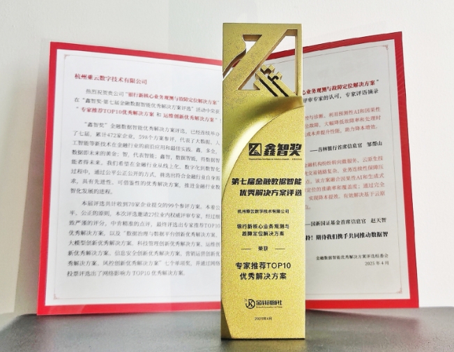“鑫智獎”作為金融數(shù)據(jù)智能領(lǐng)域的重要獎項,已連續(xù)舉辦七屆,致力于挖掘并推廣金融科技與數(shù)據(jù)智能深度融合的優(yōu)秀成果,彰顯數(shù)據(jù)智能在金融場景中的落地成效和未來潛力。2025年評選活動共計收到來自70家企業(yè)的99個方案參評,經(jīng)過27位專家評審與答辯打分,評選出專家推薦TOP10優(yōu)秀解決方案。乘云數(shù)字此次獲獎的“專家推薦TOP10優(yōu)秀解決方案”,圍繞國內(nèi)銀行新一代核心系統(tǒng)的復(fù)雜性面臨的全新運(yùn)行穩(wěn)定性挑戰(zhàn),在快速的發(fā)現(xiàn)問題、定位問題、處理問題及大模型新技術(shù)的應(yīng)用等方面展現(xiàn)出專業(yè)、系統(tǒng)的技術(shù)優(yōu)勢,獲得專家組高度認(rèn)可。