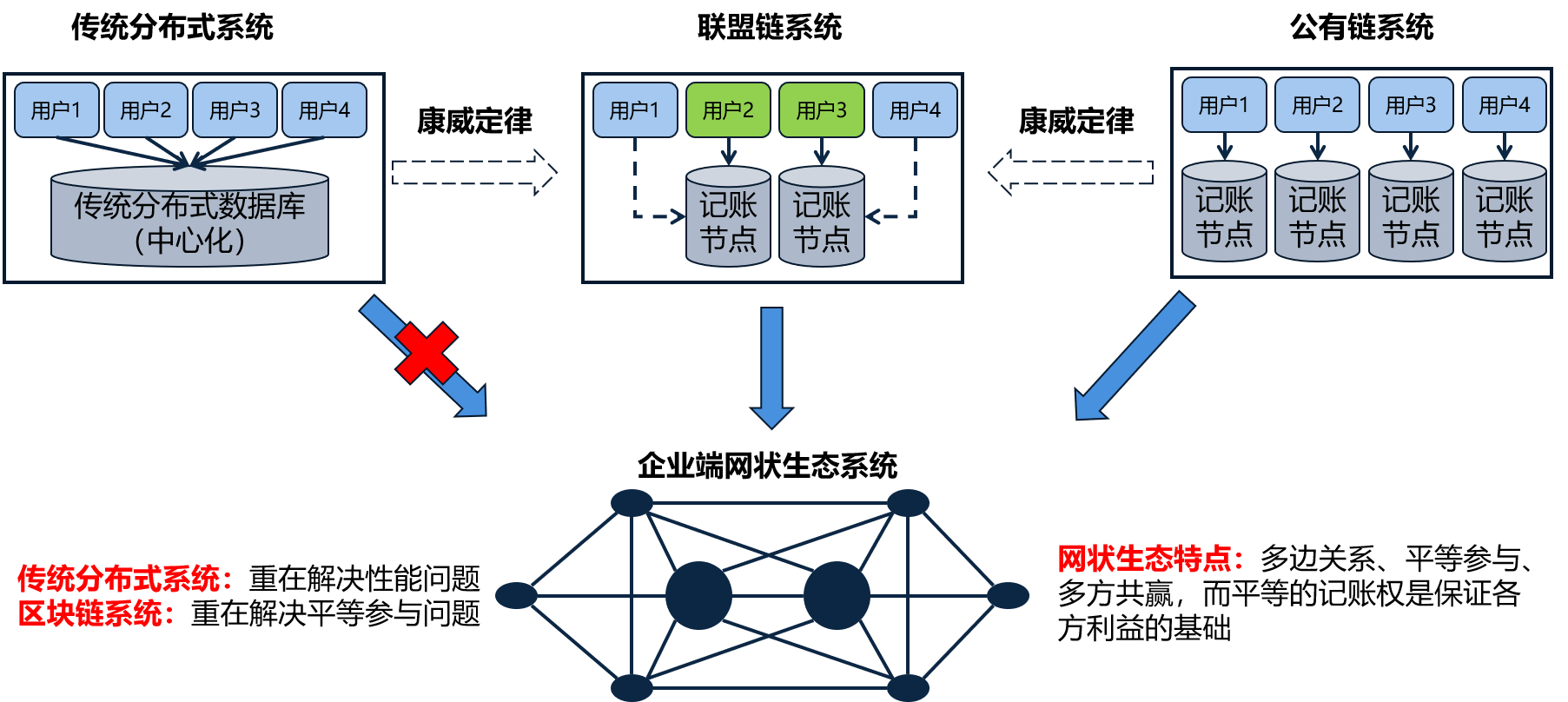 社會環(huán)境已經(jīng)從具有較強依附關(guān)系的中心化輻射狀生態(tài)結(jié)構(gòu)逐漸演進至平臺化、多中心、自由協(xié)作的網(wǎng)狀體系,尤其是在企業(yè)端,根據(jù)康威定律,設(shè)計對象的組織結(jié)構(gòu)會映射到其系統(tǒng)結(jié)構(gòu),所以,符合多中心網(wǎng)狀生態(tài)特點的系統(tǒng)架構(gòu)必然會應(yīng)運而生。傳統(tǒng)的分布式系統(tǒng)其誕生目的主要是為了提升系統(tǒng)性能,而區(qū)塊鏈系統(tǒng)則更多考慮了如何幫助用戶平等參與網(wǎng)絡(luò),這應(yīng)該是二者在設(shè)計理念上的核心差別,因此,區(qū)塊鏈系統(tǒng)比傳統(tǒng)的分布式系統(tǒng)更適于多方共贏生態(tài)環(huán)境的構(gòu)建。這個是看起來有點兒“務(wù)虛”,但是也有其道理的聯(lián)盟鏈的價值。公鏈的問題在于,如果現(xiàn)階段應(yīng)用,顯然不符合企業(yè)端生態(tài)的實際情況,企業(yè)端的生態(tài)環(huán)境即便你一開始沒設(shè)計中心也會自然產(chǎn)生中心,這是人的社會性決定的,所以也不要那么排斥所謂的“中心化”,鏡子中照出來的無論好不好看都是你自己,化妝不解決本質(zhì)問題。