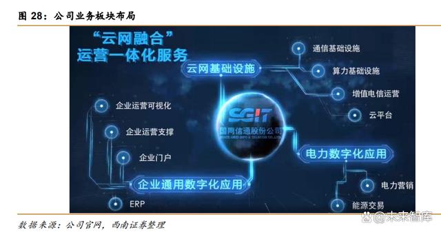 背靠國(guó)家電網(wǎng),通過(guò)重組實(shí)現(xiàn)產(chǎn)業(yè)轉(zhuǎn)型升級(jí)。公司前身為岷江水電,2019 年完成了重 大資產(chǎn)重組,重組后公司實(shí)現(xiàn)了由發(fā)供電業(yè)務(wù)轉(zhuǎn)型為信息通信業(yè)務(wù),重點(diǎn)立足能源領(lǐng)域,形 成云網(wǎng)基礎(chǔ)設(shè)施、云平臺(tái)、云應(yīng)用和企業(yè)運(yùn)營(yíng)支撐服務(wù)四大板塊業(yè)務(wù),具備了“云網(wǎng)融合” 全產(chǎn)業(yè)研發(fā)和生產(chǎn)服務(wù)能力,助力能源互聯(lián)網(wǎng)建設(shè)和企業(yè)數(shù)字化轉(zhuǎn)型。2020 年,為適應(yīng)新 形勢(shì),公司對(duì)原有四大板塊業(yè)務(wù)進(jìn)行優(yōu)化調(diào)整,升級(jí)為云網(wǎng)基礎(chǔ)設(shè)施、企業(yè)通用數(shù)字化應(yīng)用 和電力數(shù)字化應(yīng)用等三大板塊業(yè)務(wù)。