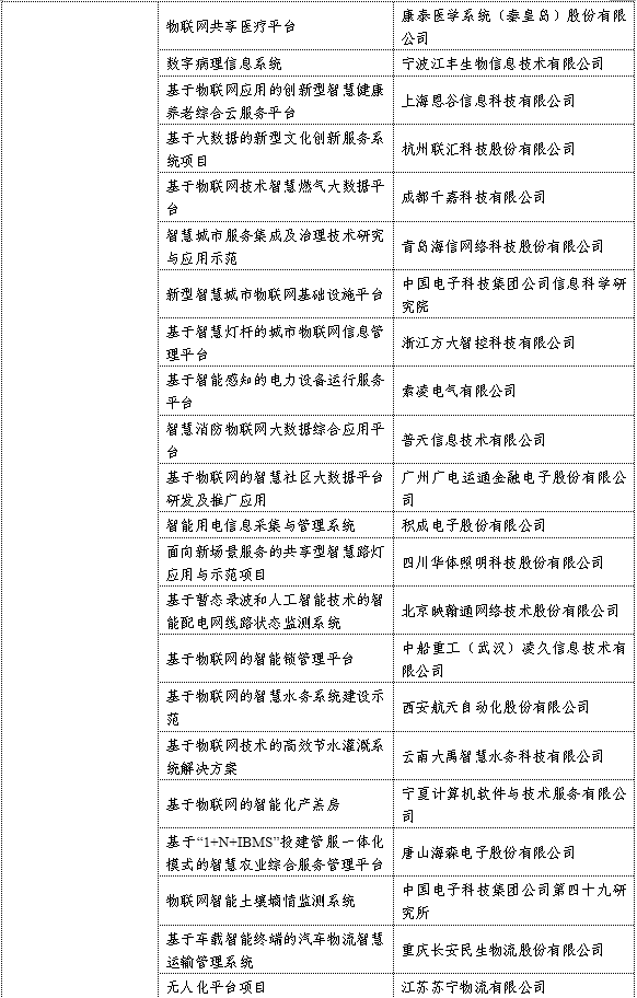 2018年物聯(lián)網(wǎng)集成創(chuàng)新與融合應(yīng)用項(xiàng)目名單