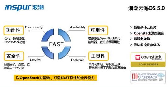 對(duì)于OpenStack架構(gòu)未來(lái)的發(fā)展,張東認(rèn)為"FAST"云計(jì)算產(chǎn)品設(shè)計(jì)理念是浪潮建立差異化競(jìng)爭(zhēng)優(yōu)勢(shì)的重心所在。浪潮的"FAST"是指從Functionality(功能性)、Availability(可用性)、Security(安全性)、Toolchain(工具化)著手,提供成熟、完善、易用的OpenStack方案型產(chǎn)品,推動(dòng)開源技術(shù)更好普惠。