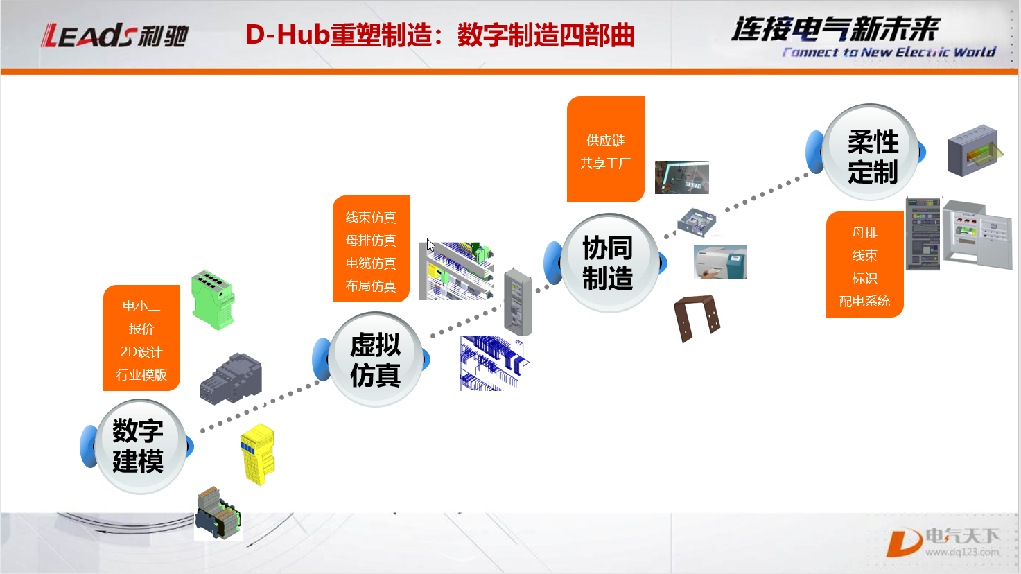 采訪中,令永卓感慨道:“我已經(jīng)服務于電氣行業(yè)25年,很榮幸作為參與者一路見證電氣行業(yè)由傳統(tǒng)走向今天的智能化,這些離不開智能制造近年來的大力推動。當前企業(yè)紛紛將其納入發(fā)展的戰(zhàn)略目標,利馳也不例外,不斷創(chuàng)新研發(fā),先后推出了工業(yè)電氣一站式工作平臺——電氣天下和D-Hub企業(yè)數(shù)字化協(xié)同平臺,幫助電力裝備制造行業(yè)智造升級。” 據(jù)了解,電氣天下針對個人用戶開放服務,提供海量免費工業(yè)設計軟件、選型數(shù)據(jù)及服務、專業(yè)文獻等資源,幫助電氣行業(yè)上下游實現(xiàn)電氣的選型、圖紙、樣本資料、軟件下載,涵蓋電氣指數(shù)、電氣智庫知識分享一體化與一站式的服務。而把眾多工業(yè)軟件集成到一個云端數(shù)據(jù)庫,一個統(tǒng)一的數(shù)字化協(xié)同平臺——D-Hub,則成功地打通了選型、報價、設計、工藝、制造、供應鏈的數(shù)據(jù),使得企業(yè)的數(shù)據(jù)資產(chǎn)可以跨部門、跨企業(yè)的共享和復用,并讓數(shù)據(jù)在流動中不斷增值。目前D-hub已覆蓋多種模板,建立了以3D元件為核心的覆蓋配電、自動化行業(yè)1000多個品牌、3萬多個系列、2.5億多個電氣及自動化元件數(shù)據(jù)庫。令永卓直言:“D-Hub的功能遠不止此,利馳已經(jīng)在D-Hub上開始發(fā)力,發(fā)展數(shù)據(jù)可視化技術,進而實現(xiàn)設備互聯(lián)、產(chǎn)線互聯(lián),以及智能調(diào)度,助力電力裝備業(yè)的設計、制造的全流程數(shù)字化。并且,未來D-Hub將帶來更多可能性,實現(xiàn)設備數(shù)字化,進而將設備資產(chǎn)與維修工程師和設備生產(chǎn)商連接起來,實現(xiàn)資源互聯(lián)和設備在線,最終實現(xiàn)智能運維,更好地服務電力電氣行業(yè)。”