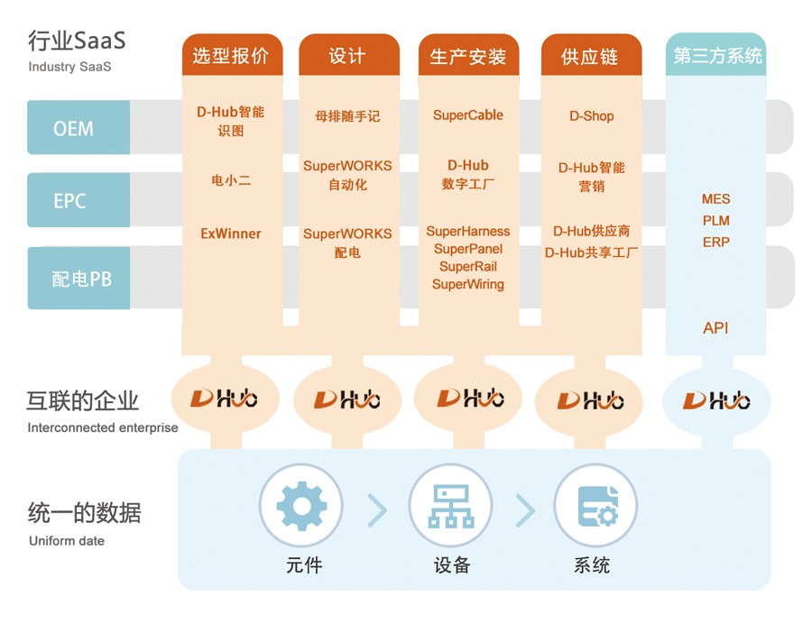 令永卓深諳數(shù)據(jù)的價值。他帶著創(chuàng)業(yè)家的韌勁,敏銳洞察電力裝備制造行業(yè)的發(fā)展趨勢,本著從數(shù)據(jù)中學習、改變電力電氣行業(yè)的初衷,從數(shù)據(jù)中提取價值服務用戶的理念,提出用數(shù)據(jù)賦能行業(yè),致力于打通數(shù)據(jù)流。談起如今專注挖掘數(shù)據(jù)的價值,令永卓表示,這一切源于他求學時代的經(jīng)歷。大學期間,在清華工程力學系求學的令永卓建立了面向問題建立數(shù)學模型,把復雜的非線性問題抽象為簡單的線性問題進行求解的思維方式。在后來的工作中,他發(fā)現(xiàn)設備的設計、生產(chǎn)制造以及運維之間并非真正有效連接,存在嚴重的數(shù)據(jù)偏差甚至脫節(jié)的現(xiàn)象,為達到設計、制造以及供應鏈的協(xié)同,他提出在電力裝備制造行業(yè)形成貫穿橫向、縱向、端到端的數(shù)據(jù)流通的舉措。之后,他將創(chuàng)想落地,從電氣軟件的數(shù)據(jù)建模開始,制定標準,進行3D仿真,通過機器智能設計、智能識圖、智能報價,進而幫助產(chǎn)品實現(xiàn)協(xié)同制造。令永卓透露:“當前基于D-Hub制造的縱向數(shù)據(jù)流與D-Hub供應鏈的橫向數(shù)據(jù)流已經(jīng)被成功打通,下一步我們將重點打通集產(chǎn)品研發(fā)、系統(tǒng)設計、安裝施工、運營維護的D-Hub運維的端到端數(shù)據(jù)流。”