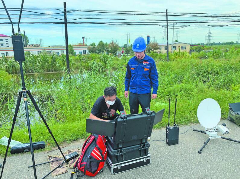 在遼寧盤錦繞陽(yáng)河潰壩應(yīng)急搶險(xiǎn)現(xiàn)場(chǎng),變電站搶險(xiǎn)人員通過(guò)超小型便攜衛(wèi)星站和無(wú)線寬帶網(wǎng)格網(wǎng)通信設(shè)備,將現(xiàn)場(chǎng)情況回傳至后方指揮中心。